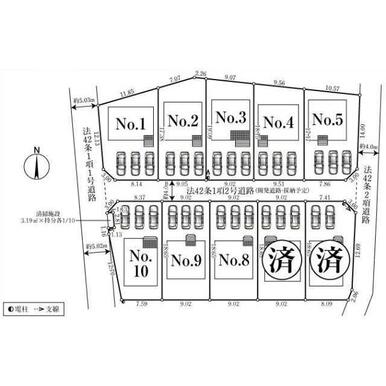 号棟番号:5号棟 第22条区域 建物面積に別途ルーフバルコニー約9.72平米有り 駐車場2台(車種による) 敷地西側擁壁有り |