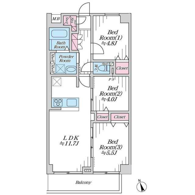 | 間取り(内訳) | 3LDK(洋5.5/4.8/4LDK11.7) | ||